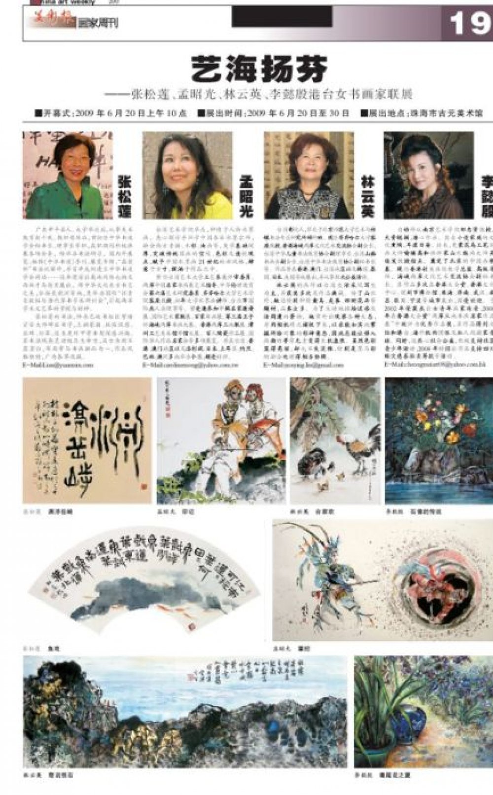 2009.6.13 藝海揚芬 張松蓮、孟昭光、林云英、李懿殷港台女書畫家聯展 美術報