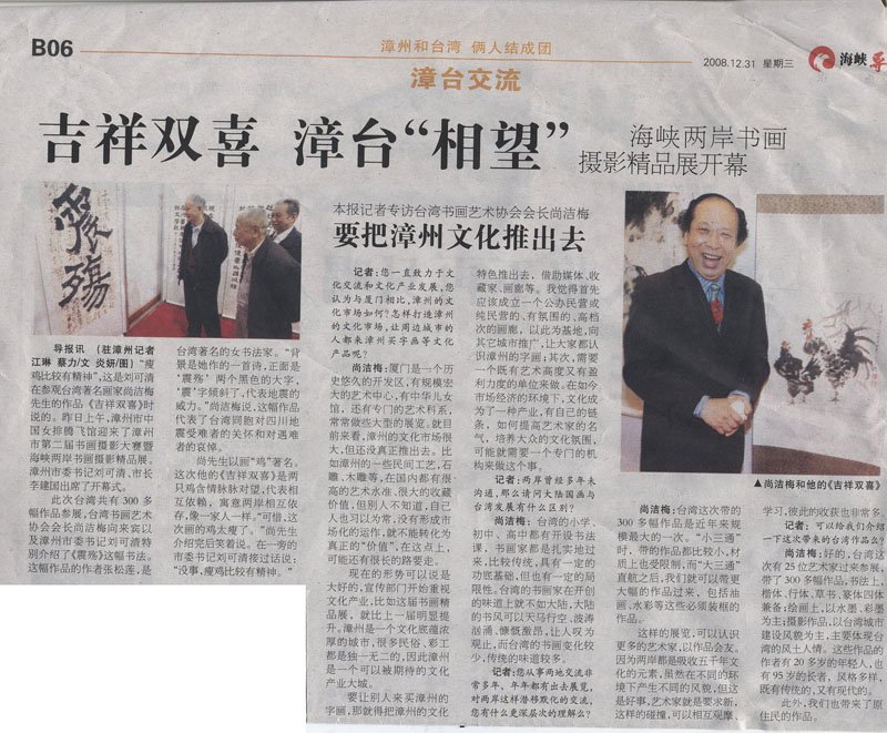 2008.12.31 海峽導報 漳州市委書記劉可清、市長李建國參觀張松蓮「震殤」之書法作品